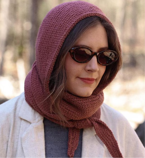 Этой зимой шарфы-капюшоны становятся настоящим хитом. Я уже связала два таких капюшона спицами, и теперь хочу попробовать связать их крючком и тунисским вязанием. Одну из моделей крючкового шарфа-капюшона я нашла на Этси в любимой многими технике поперечного вязания. Автором является TwoOfWandsShop, а модель называется Амелия. Вязание начинается с затылка, что можно увидеть на фото, представленном ниже Ещё фото, которые помогут понять принцип вязания шарфа: Укороченные ряды у лица: Если вы тоже хотите попробовать связать шарф-капюшон, модель Амелия может стать отличным выбором!