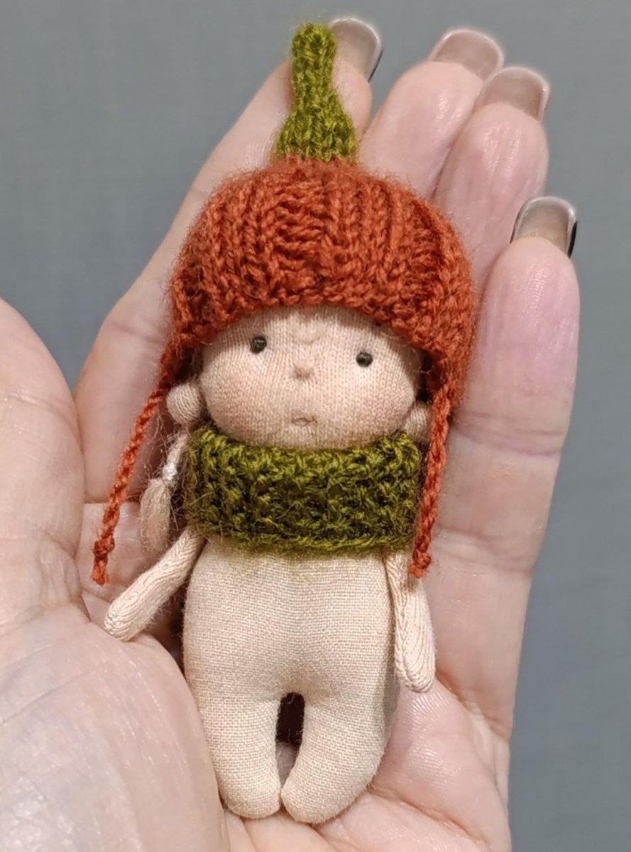Маленькая куколка Тыковка готова. Такая славная малышка получилась. Осталось сшить сарафанчик. Хочется, чтобы получился аккуратный наряд. Буду подбирать ткань, чтобы Тыковка выглядела привлекательно. Скоро покажу готовый образ!