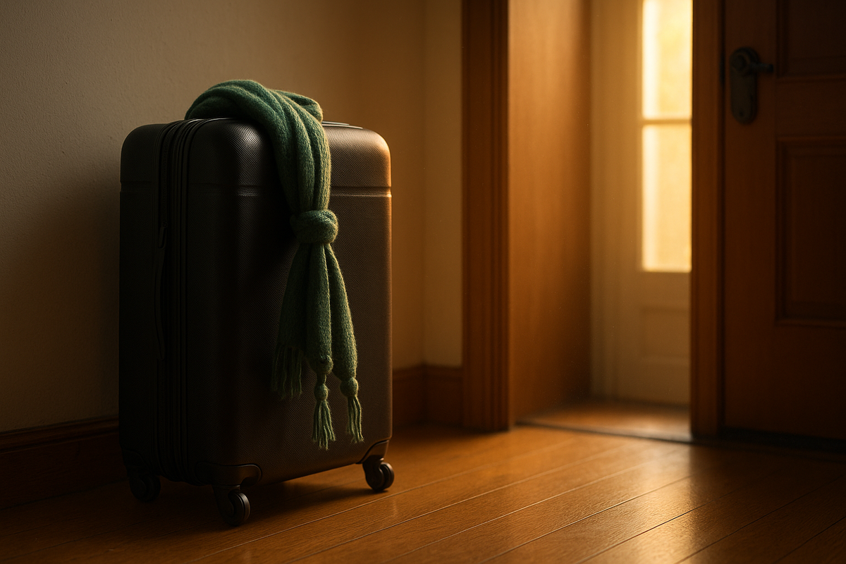 В прихожей стоял чемодан, и дом дышал иначе — как будто кто-то приоткрыл форточку в будущее. На чемодане лежал зелёный шарф — тот самый, который Лена носила каждую осень и всё равно простужалась, на нём заметны были два крошечных узелка — бабушка когда-то завела привычку завязывать их на удачу.