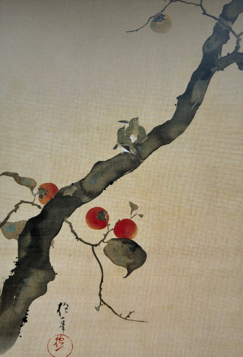 На картине изображены: Вот, что сказал Deep Seek об этих символах: Вот её символический анализ: 1. Растение: Хурма (каки) · Сезон: Поздняя осень, сбор урожая (октябрь-ноябрь). · Символика: · Радость и изобилие (алые плоды). · Преодоление трудностей (хурма слаще после заморозков). · Долголетие (дерево живёт десятилетия). 2. Птицы: Воробьи (судзумэ) · Количество «3»: В японской культуре три птицы означают: · Единство (семья: родители и птенец). · Гармонию неба, земли и человека. · Символика: · Скромность и жизнестойкость. · Связь с повседневной жизнью (воробьи — часть сельского пейзажа). Предложенный стих: "Судзумэ наку Нива но какэхаси Фурусато но Аки о сирурану Хито о синоми те" Перевод: "На ветке хурмы во дворе Щебечут воробьи — О, если бы тот, кто не ведает Осени в родных краях, Услышал этот зов!" Продолжение следует…. Любите прекрасное !!!