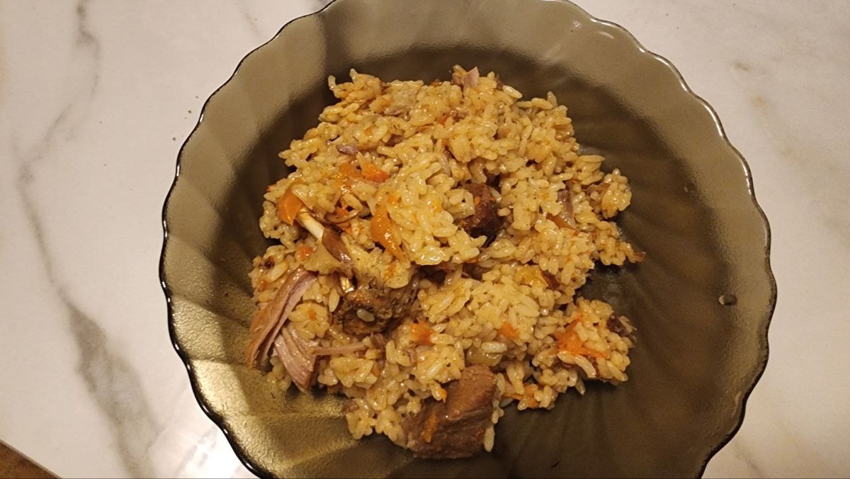На ужин Женя приготовил плов в казане