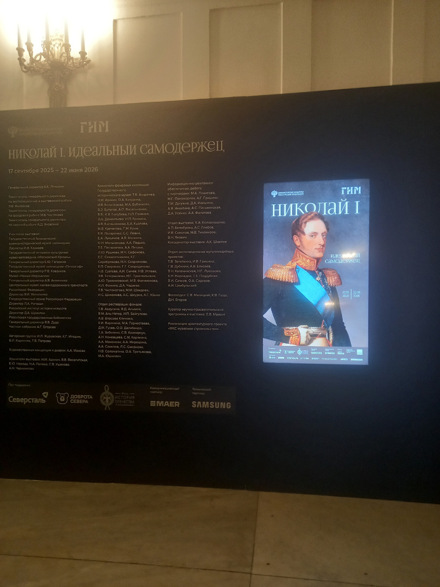 В ГИМ, по сути, центральном историческом музее страны, идёт выставка, посвящённая императору Николаю I. Уже само определение "идеальный монарх" настораживало. Я даже не хотела идти на эту выставку, но дочка будет сдавать ЕГЭ по истории и упросила пойти вместе. Ладно, думали, что секрет такого названия поймём из содержания экспозиции.