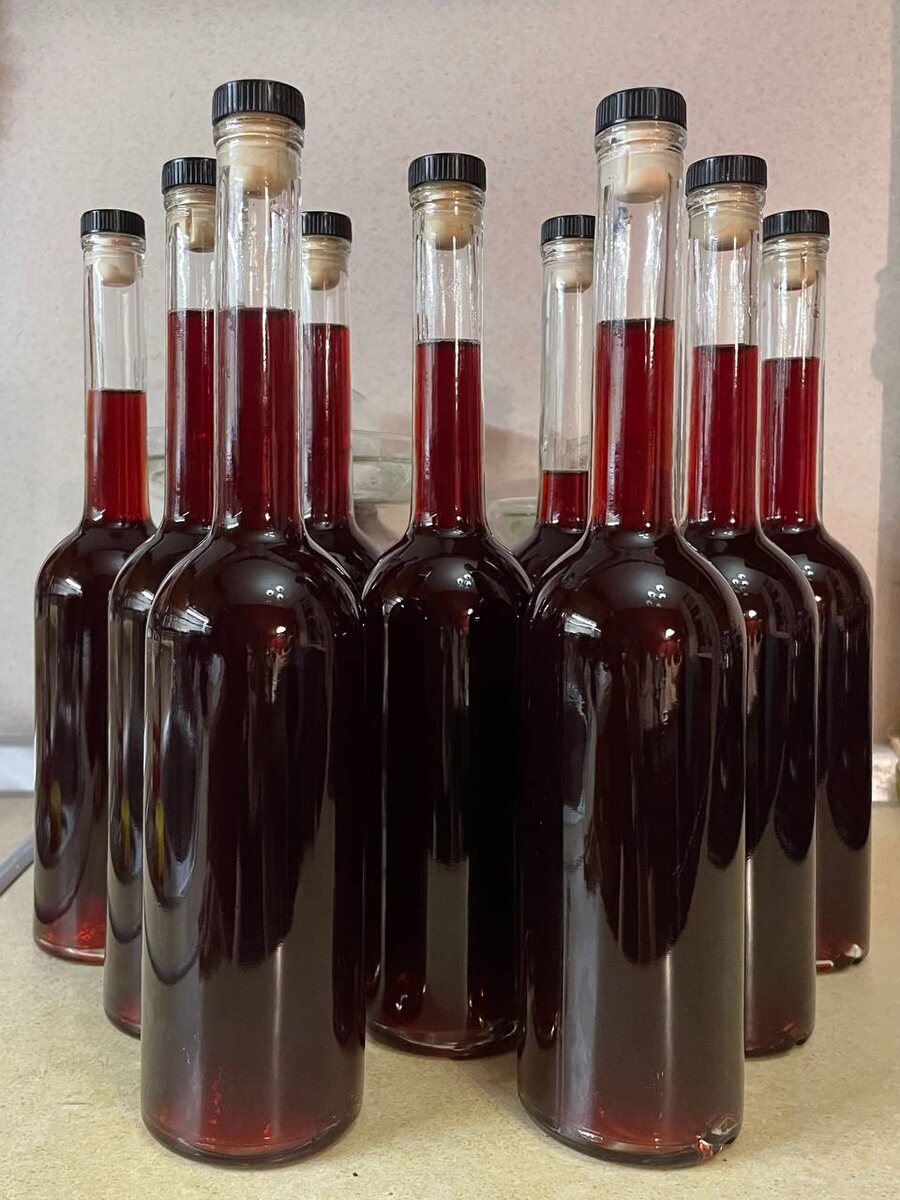 Сегодня занимались дачными делами дома. Разлила по бутылкам смородиновое вино, в этом году очень красивое и очень забористое. Вышло почти 5 л с трех кустов. А еще отфильтровала первые 6 л сидра еще дачного отжима. Цвет уже годный, да и жидкость почти прозрачная, но пусть еще немного побродит. Справа банка с яблочным соком домашнего отжима, ей всего 2 недели, она активно бродит, поэтому осадок еще не начал образовываться и фильтровать рано. А вообще скоро дачные дела на зимнее время станут домашними переделками, ремонтами и так далее🙂
