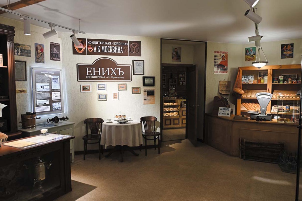 Музей расположился на главной пешеходной улице города – Почтовой, которую часто именуют Рязанским Арбатом. Местом прописки музея стал дом, возраст которого перевалил за сотню лет. Именно с его истории начинается экскурсия. Кстати, много лет назад это здание имело отношение к хлебу: в конце XIX века его приобрел купец Яков Михайлович Михайлов, у которого на реке Лыбеди была мельница. «На первом этаже здесь располагались кинотеатр, магазины, ресторан. На втором, где теперь находится наш музей, была гостиница «Центральные номера». В ней впервые в Рязани появилась ванная, где из крана шла горячая вода, – рассказывает экскурсовод Наталья Николаевна Скворцова. – А на третьем этаже находилось модное фотоателье».