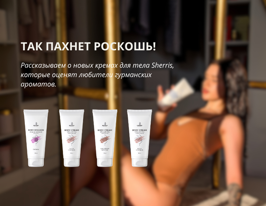 Так пахнет роскошь! Рассказываем о новых кремах для тела Sherris, которые оценят любители гурманских ароматов. Знаете ли вы о гурманских ароматах в парфюмерии? Они напоминают об изысканных десертах – ими хочется наслаждаться бесконечно, смаковать, ощущать обволакивающий вкус. Именно такая группа ароматов и легла в основу новых кремов для тела Sherris. Впрочем, они не только роскошно пахнут, но и ухаживают за кожей. Крем «Бельгийский шоколад» питательный Именно так пахнет в кондитерской! «Вкусный», глубокий аромат растопленного шоколада и глубокое питание кожи. Крем «Бельгийский шоколад» рекомендован для: – ухода в холодное время года – питания и тонизирования – восстановления барьерных функций кожи Этот крем стоит использовать в зимнее и осеннее время: масло макадамии в составе снижает реакцию кожи на перепад температур, заполняет микроповреждения и содержит много жирных кислот. Ниацинамид снижает гиперпигментацию, восстанавливает гидролипидный баланс и поддерживает синтез коллагена. А