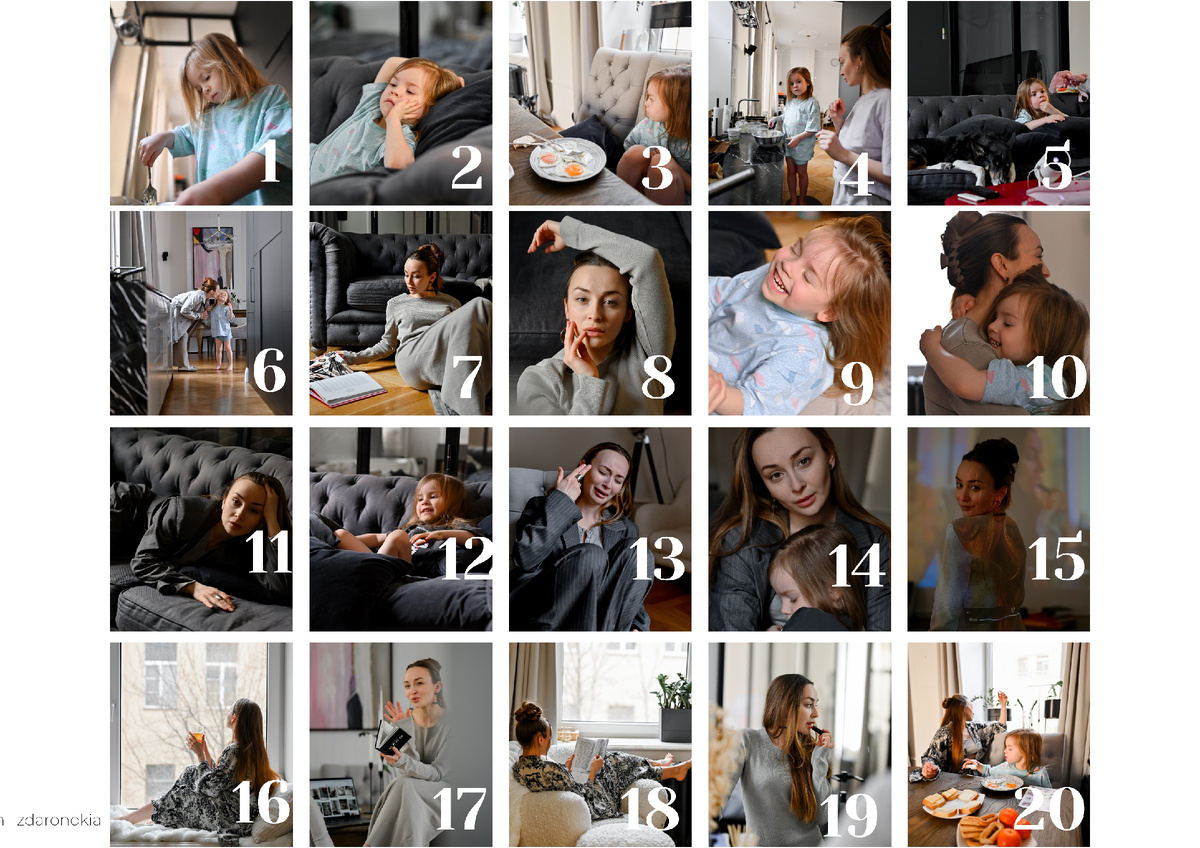 - Идея 1: Подчеркнуть хаос съемки — беготня за Луной и Эсми, перевернутые подушки, плач ребёнка. Можно сделать забавные стоп-кадры «хаоса» с текстом: «Идеальный контент? Ха-ха. На деле — битва с реальностью».