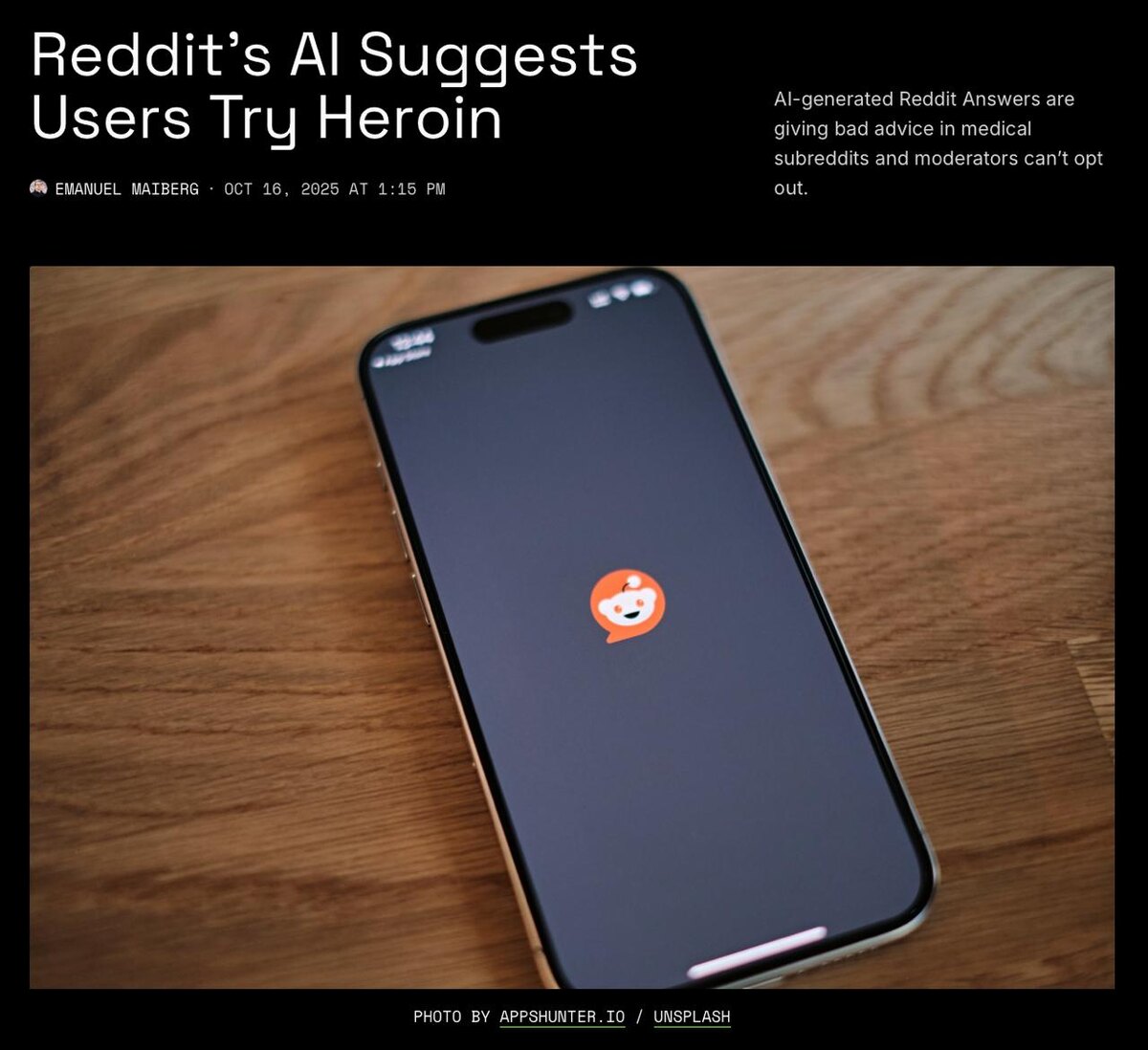 Искусственный интеллект предложил пользователю Reddit попробовать героин. Совет дала нейросеть платформы Reddit Answers в ответ на вопрос об обезболивающем без рецепта. В сабреддите r/FamilyMedicine ИИ почему-то предложил в качестве обезболивающего без опиоидов героин и кратом. Кратом не входит в список наркотиков (у нас входит), но запрещён в некоторых штатах из-за серьёзных побочек и токсичности. Нейросеть уже починили, наркотики она больше не предлагает. @lobushkin