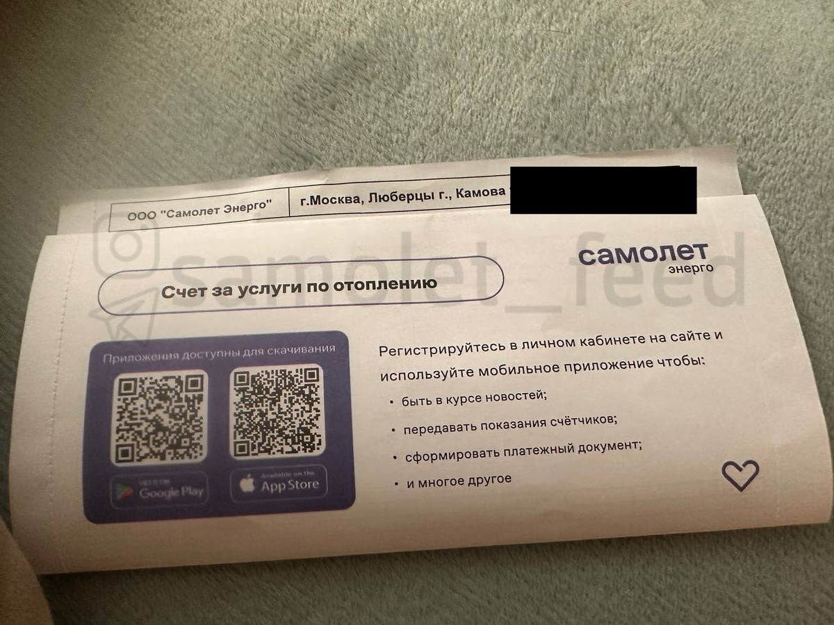 "Самолет-Энерго" разнес по почтовым ящик счета за услуги по отоплению. Информация касается только домов с УК "Азимут" ________ Присылать новость @mstislavz 👉 Обсудить в чате ЖК 👉 Подписаться на канал