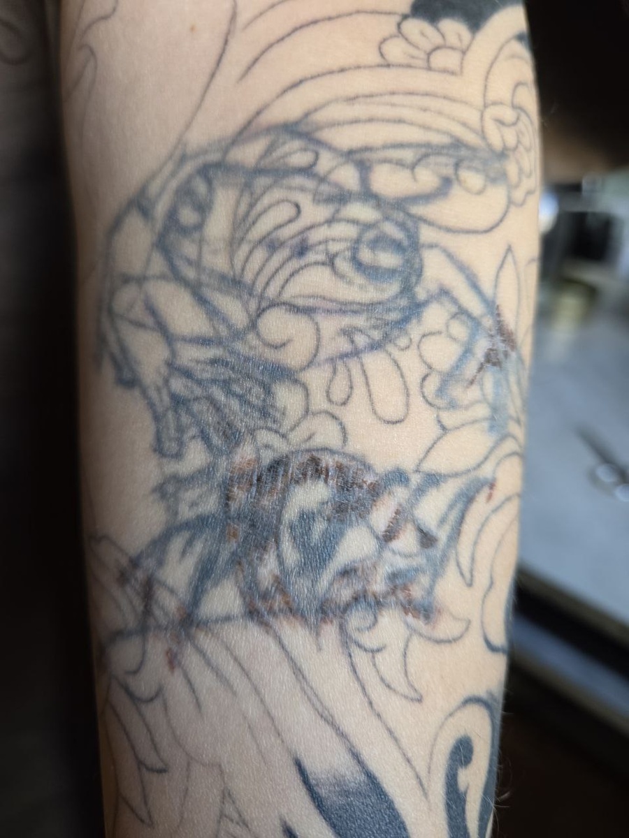 Процесс удаления фрагмента тиаиуировки под перекрытие ремувером РевайвИнк.