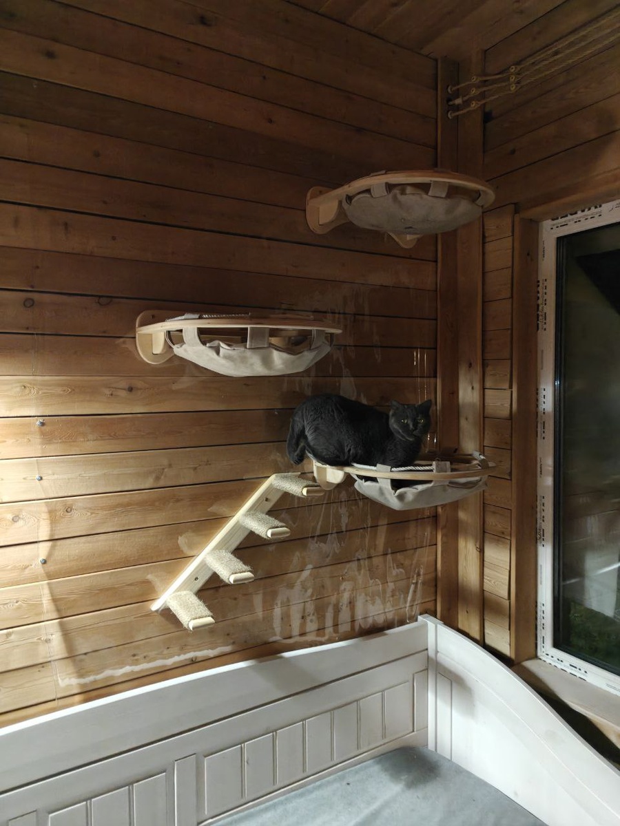 Докупила ещё два гамака на стену (они дорогие, но коты их любят больше всего
