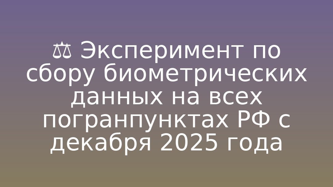 Правительство РФ постановило с 1 декабря 2025 года по 30 июня 2026 года распространить эксперимент по сбору биометрии у иностранцев на все российские пограничные пункты при наличии технической возможности. Исключения предусмотрены для некоторых категорий иностранных граждан, дипломатов, сотрудников фельдъегерской связи и детей до 6 лет. Нововведение направлено на создание цифрового профиля мигрантов и мониторинг их пребывания в РФ.