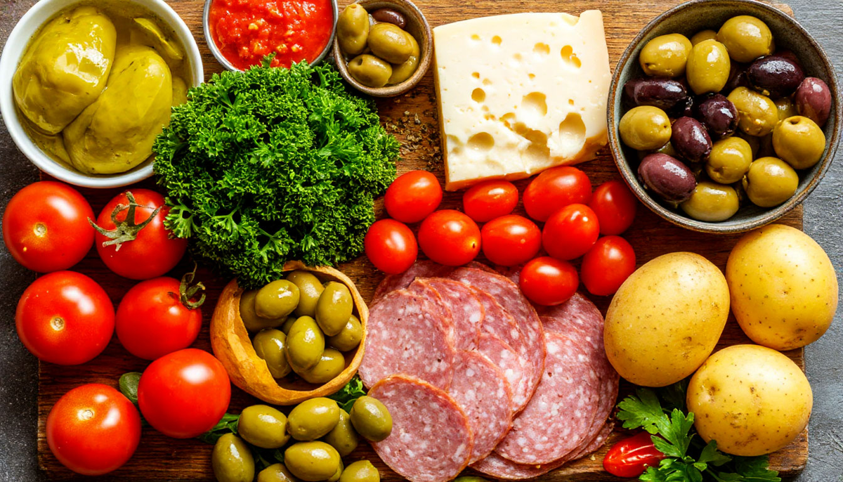Вяленые томаты и копченая колбаса дают насыщенный "взрослый" вкус. Используйте остатки любых мясных деликатесов и сыра.