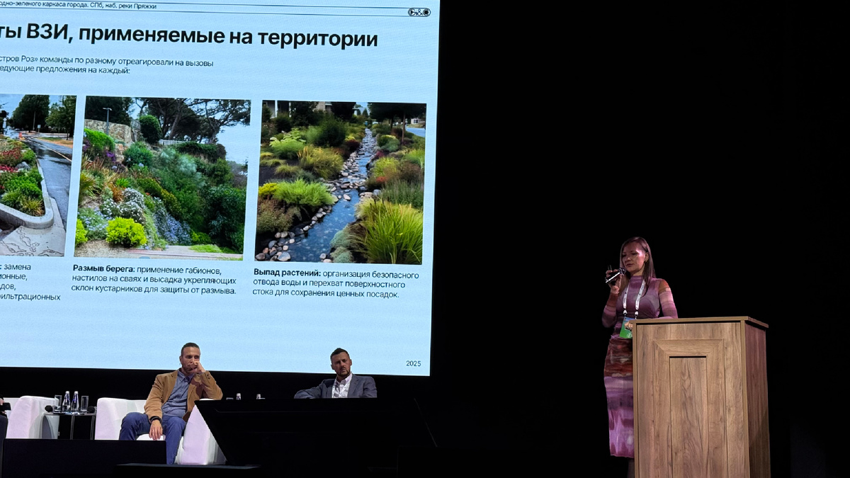 Как отметил модератор сессии Алексей Саянов, президент Гильдии ЛАИН, Санкт-Петербург отличается от других городов России — он особенный. Именно здесь корректнее говорить не только о водно-зелёной, но и о серо-зелёной инфраструктуре, объединяющей природные и инженерные решения в единую систему.