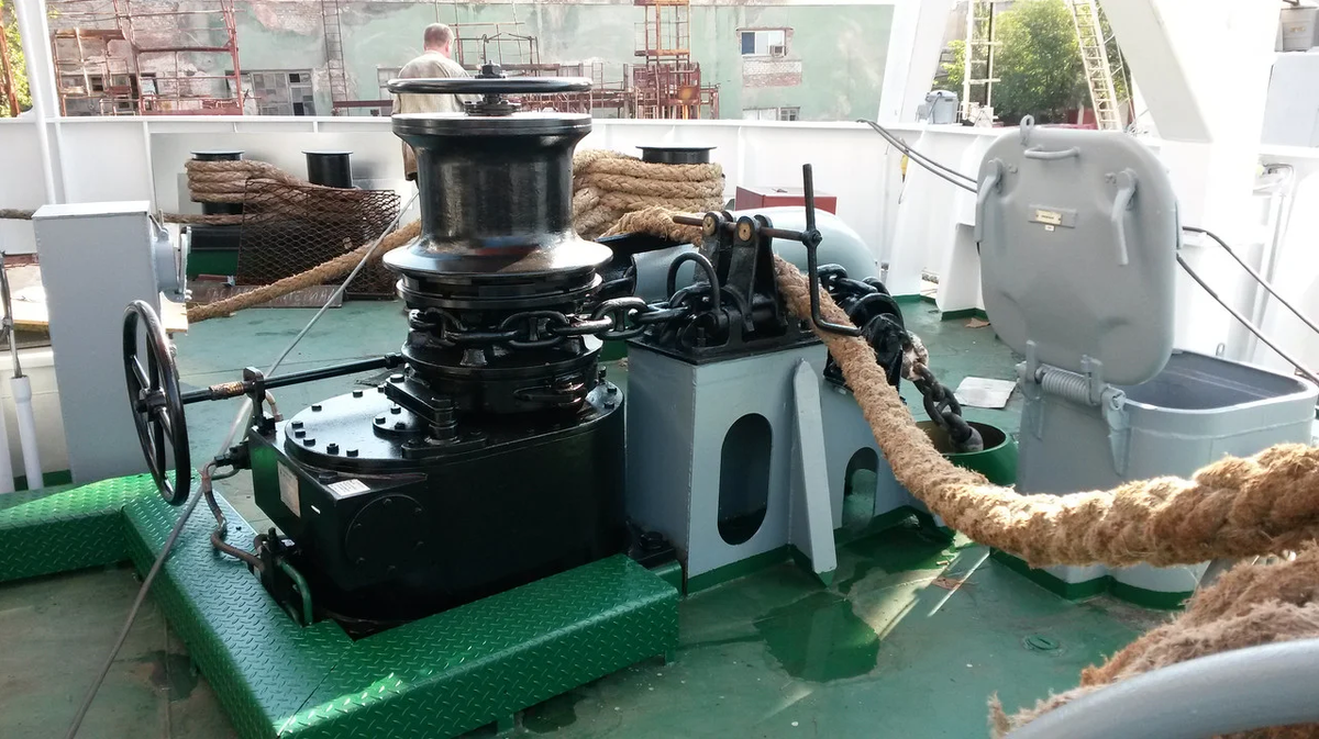 Есть якорно-швартовый шпиль на корме от компании Adria Winch. Накрылся на его пьедестале управления счетчик длины вытравленной цепи марки Ziegler DPM 24/48D. Шпиль вот такой: А счетчик, значит, вот такой: И стоит он неприлично вот столько: Да еще Зеро и Спан настраиваются потенциометрами! Нам такого не надобно, нам надобно, чтобы покруче, а главное - подешевле. И нашел я вот такой индикатор токовой петли: Вот! И цена, и качество, и настройки все программные! Но схему пришлось переделать. Принцип такой: ПЛК Митсубисси считает импульсы с проксимити свитча на звездочке шпиля, в его программе заложено сколько импульсов на метр. И далее ПЛК выдает на своем аналоговом выходе сигнал 4-20мА на диапазон 0-400 метров длины цепи. Лихкотня! Берем и делаем! Но еще пришлось болгарочкой подрихтовать монтажное отверстие ))) После установки и подключения, настраиваем необходимые параметры на индикаторе ИТП-420 и проверяем в работе. Все работает исправно, мерили чуть ли не рулеткой по факту и сличали с