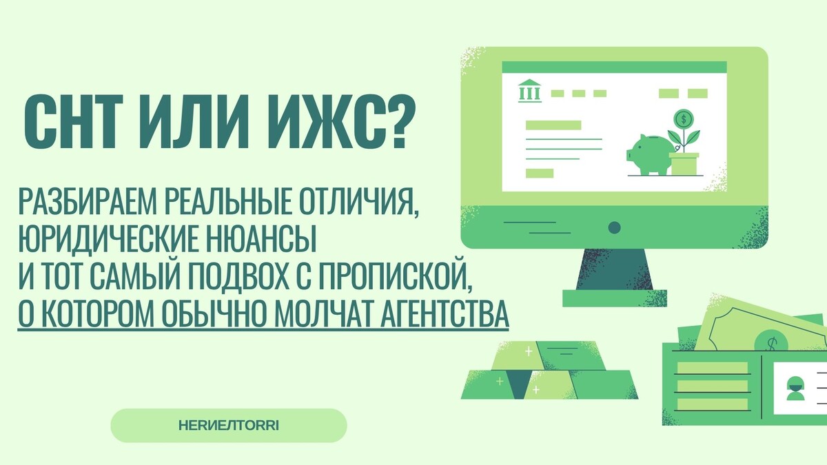 Садоводческие товарищества (СНТ) часто кажутся отличным вариантом: цены ниже, налоги меньше, соседи — “по духу”. Но за этой внешней простотой иногда скрываются риски, о которых покупатели узнают уже после сделки. Разберём, как понять, что СНТ “чистое”, и какие подводные камни могут быть при прописке. 🧭 Что такое СНТ и чем оно отличается от ИЖС СНТ — это объединение владельцев участков, которые вместе управляют территорией: договариваются о дорогах, коммуникациях, охране и т.д. Главные отличия от ИЖС: земля предназначена для садоводства, а не для постоянного проживания; инженерные сети и дороги на балансе самих жителей, а не муниципалитета; не всегда есть централизованные коммуникации; прописка возможна, но только если дом признан жилым и соответствует нормам. ⚠️ 5 признаков, что СНТ может быть ловушкой 1️⃣ Непонятный статус земли Проверяйте выписку ЕГРН. Если участок находится в зоне ограничений (водоохранной, санитарной и т.д.), строить дом или подключать коммуникации може
