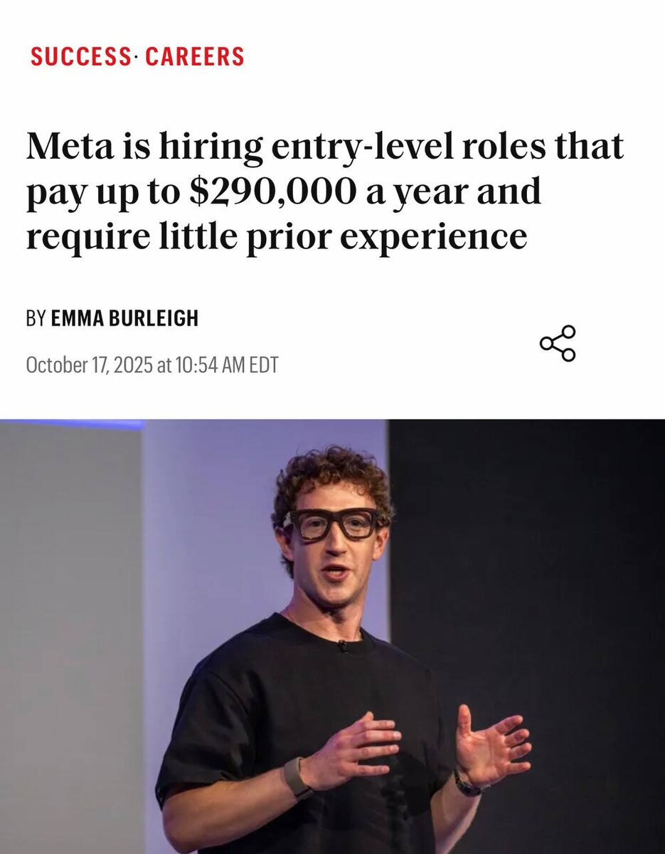 Meta зовёт джунов на 14–20 млн в год. Да, начинающих
