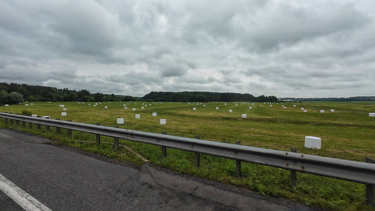 Следующий город нашего путешествия в Беларуси – Гродно, но до этого, по плану, у нас есть еще несколько мест для посещения.Проезжаем поля с какими-то белыми штуками, прям интересно стало, что это и зачем лежит? Оказывается, это специально изготовленный корм для домашнего скота – сенаж. Сначала траву скашивают, потом дают ей полежать и подвялиться до нужной влажности, тут главное не передержать, а то получится обычное сухое сено. Потом траву плотно заворачивают в плёнку, внутри создается безвоздушное пространство, сенаж таким образом консервируется и может храниться очень долго, а трава при этом надолго остается влажной и сочной. Честно – такое увидела впервые, так что для меня это нечто неизвестное)))