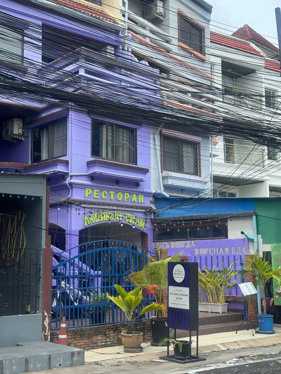 Мы были в Паттайе в сентябре — несезон, пасмурно, но при этом людей не так много, тепло и море чистейшее. Казалось бы, кто вообще сюда поедет сейчас? Но вот ты идёшь по улице, слышишь родное “давай быстрее, ща дождь ливанёт”. Паттайя — это не просто Таиланд. Это маленький филиал СНГ на берегу Сиамского залива, где можно заказать борщ, сделать маникюр “как в Москве”, и при этом не слышать ни слова по-тайски. Русская речь здесь — фон. В кафе, на рынке, в аптеке — даже тайцы уже выучили “спасибо” и “привет”. Местные вывески на кириллице не шутка: «Салон красоты “Людмила”», “Шашлык Хаус”, “Массаж от Тани”. Такое ощущение, что попал в альтернативную реальность — где зима отменена, но родной менталитет никуда не делся. В сентябре туристов немного, зато живут “зимовщики” и просто те, кто решил приехать, чтобы отдохнуть без толп людей. И вот в этом странном спокойствии несезона город особенно “русский”. Утром — буддийский храм и манго, вечером — ночной рынок с едой, на котором с колонки на всю
