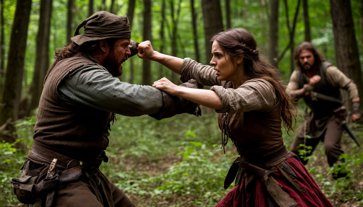 Она бросилась бежать. Ветки хлестали по лицу, сердце колотилось в висках. Она не знала, куда бежит — только прочь. Споткнулась, упала, поднялась снова. И вдруг выскочила на поляну, где стоял человек.