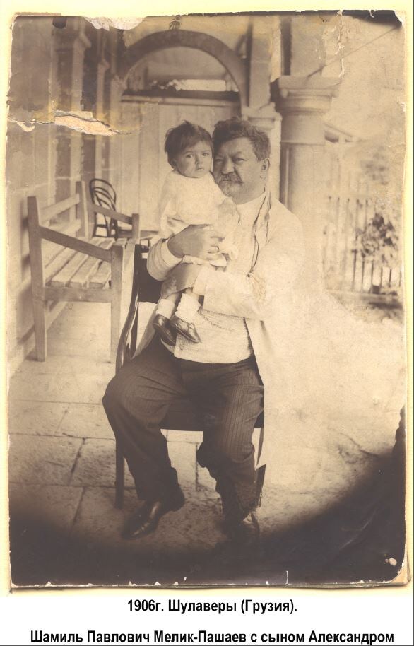 Отец отца родился еще в Карабахе. Там, по-моему, в Шуше, жил мой прадед. И почему-то, не знаю, по какой причине, дед перевез всю семью, в том числе, еще тогда маленького отца Александра Шамильевича, В Грузию. Там они поселились километрах в 40-50 от Тбилиси, в селе Шулаверы. Мать Александра Шамильевича была из древнего рода Калантаровых. Этот род с древней историей, жил на землях нынешнего Азербайджана. Когда-то Калантаровы тоже переехали в Грузию, под защиту Грузинского царя и поселились в районе Шулавер. Вот там, осенью 1905 года, в толстостенном, с каменными колоннами, доме, на холме, и появился на свет Александр Шамильевич Мелик-Пашаев. Я попал в Шуловеры уже будучи взрослым. Места, где родился отец, были удивительно красивы. Там невысокие горы кольцом окружают село, жаркие дни и прохладные ночи, царство света и красок. Отец помнил, как по шулаверскому холму к его бабушке поднимались какие - то женщины, наверное, крестьянки, в черных одеждах. Они разговаривали с бабушкой о чем-то