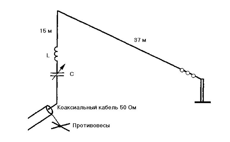 Двухдиапазонная антенна на НЧ-диапазоны 80/160 🔹 Двухдиапазонная антенна Inverted L имеет электрическую длину 5/8λ для диапазона 80 метров и 1/3λ для 160 метров. Питание антенны осуществляется по схеме с использованием коаксиального кабеля с волновым сопротивлением 50 Ом. Для работы в каждом диапазоне необходимо не менее двух противовесов (больше лучше). 🔹 Катушка L наматывается на каркасе диаметром 45 мм и содержит 40 витков провода ПЭВ-2 0.15 мм. Максимальная ёмкость конденсатора C составляет 250 пФ. Настройка антенны в диапазоне 160 метров производится путём последовательного изменения ёмкости конденсатора C, а настройка на 80 метров — изменением индуктивности L. Читать далее >>