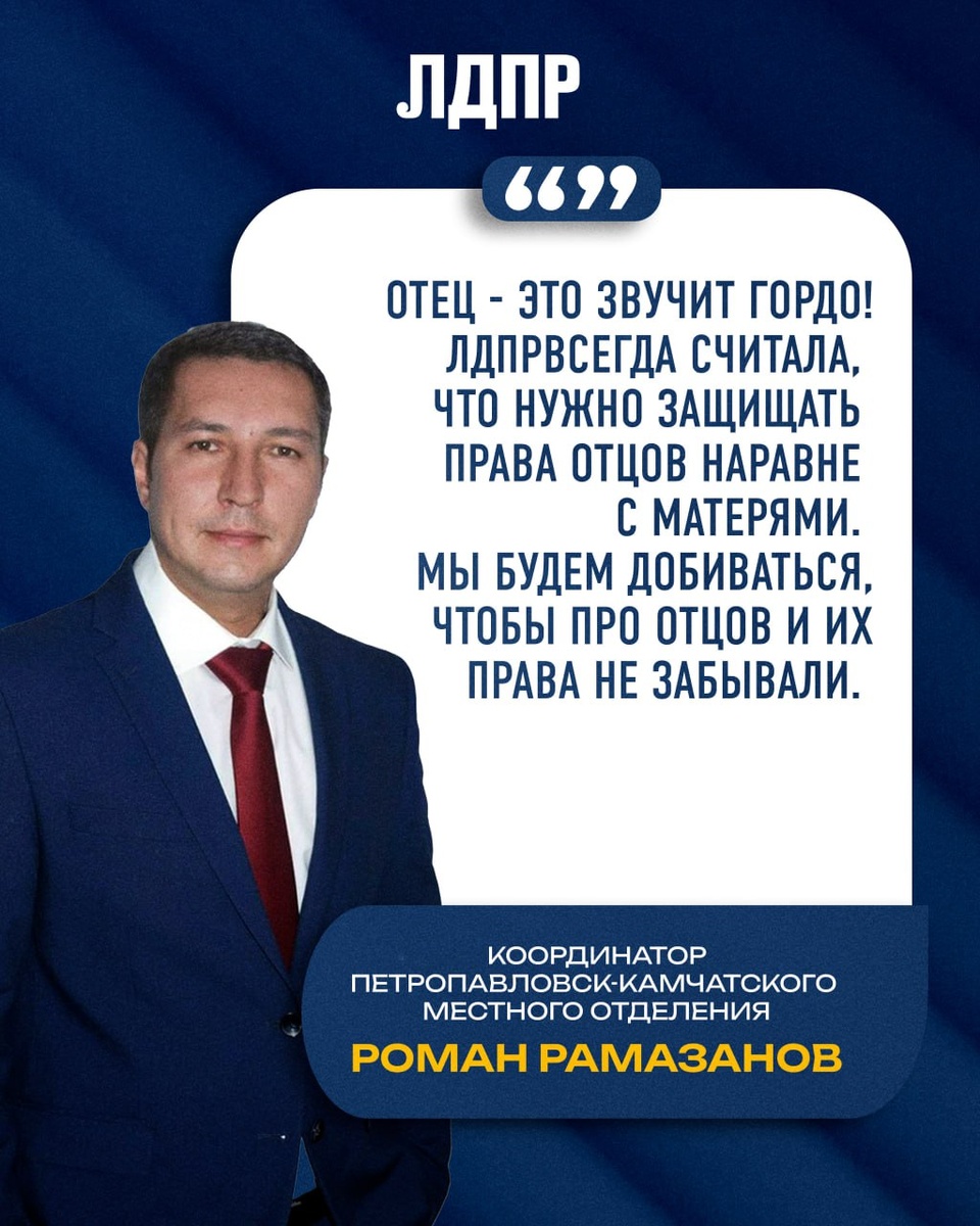 Сегодня в России отмечают День отца. Это важнейший праздник, ведь папа для ребёнка также важен, как и мама. ЛДПР поздравляет всех отцов. Наша партия многое сделала, чтобы этот праздник был. Мы продолжим добиваться равноправия в поддержке отцов и матерей. #ЛДПР #ДеньОтца