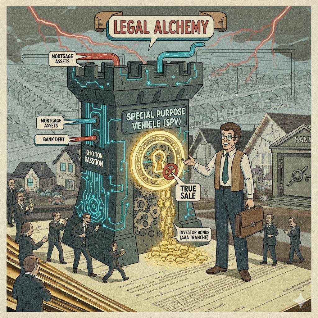 Цель была в том, чтобы создать юридическое лицо, которое было бы "удалено от банкротства" (bankruptcy-remote). Это означало, что активы (пул ипотек), находящиеся внутри SPV, должны быть полностью изолированы от всех финансовых проблем своего создателя — инвестбанка.