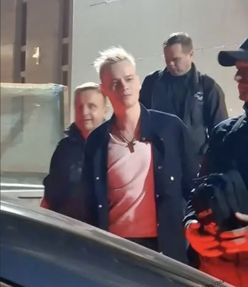 Мужчина в капюшоне, в очках. Рядом охрана. Фото выложено - и быстро удалено. Канал заблокирован. Но кадр сохранился.