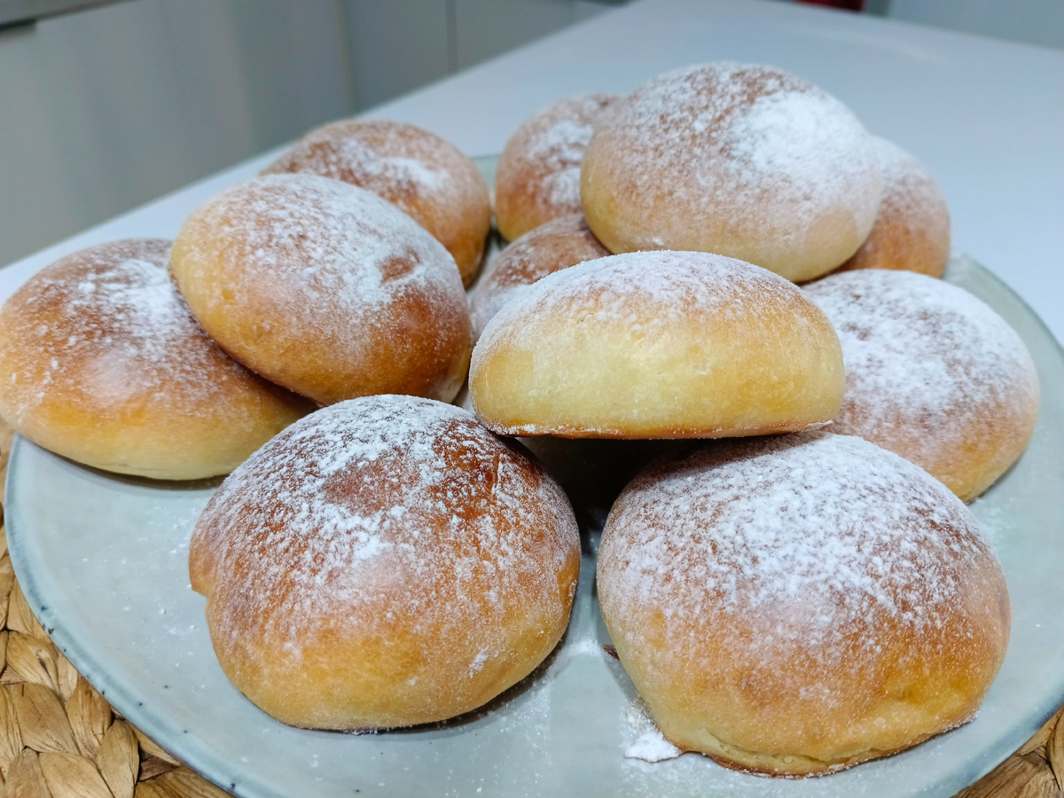 Рецепт дрожжевых булочек с яблоками: Ингредиенты (на 3–4 порции): мука пшеничная — 450 г; молоко — 250 мл; сахар — 4 ст. л.; масло растительное — 40 мл; масло сливочное — 50 г; дрожжи сухие — 10 г; яблоки для начинки — 3 шт.; сахар для начинки — 2 ст. л.; лимон — 1/2 шт.; желток — 1 шт. Инструкция: Для опары в глубокой миске соединить тёплое молоко, дрожжи и две столовые ложки сахара, перемешать и оставить на 10–15 минут в тёплом месте. В подошедшую опару добавить оставшиеся две столовые ложки сахара, влить растительное и растопленное сливочное масло. Всё тщательно перемешать, добавить просеянную муку и начать замешивать ложкой или венчиком. Как только тесто станет густым, переложить его на стол и продолжить замес руками. Тесто скатать в шарик, переложить в миску, предварительно смазанную растительным маслом, накрыть полотенцем и убрать в тёплое место на 1–1,5 часа для подъёма. Поднявшееся тесто обмять и разделить на 10 кусочков. Кусочки скатать в колобки, выложить на доску и оставить