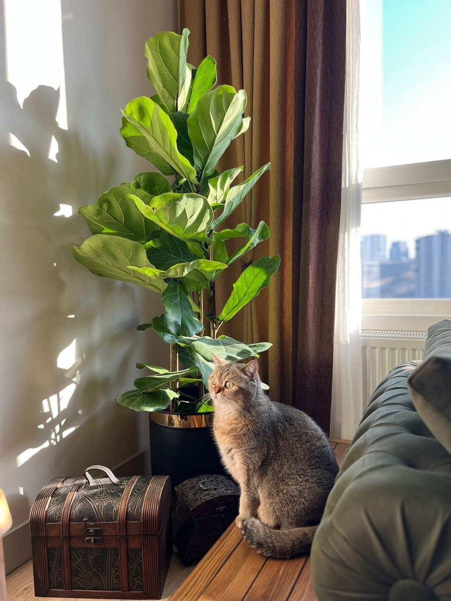 🌿 Фикус лирата — это вид вечнозеленого дерева из семейства тутовых, родом из стран Западной Африки.. Известен своими огромными, блестящими листьями в форме скрипки. В интрьере выглядит очень эффектно. Сорт лираты Бамбино Ficus lyrata 'Bambino' — имеет более компактные листья, но не думайте, что он останется малышом. Он тоже может вырасти до крупных размеров. Это растение — "светолюбивый солист", требующий пространства, чтобы не "заскучать" в тесноте.