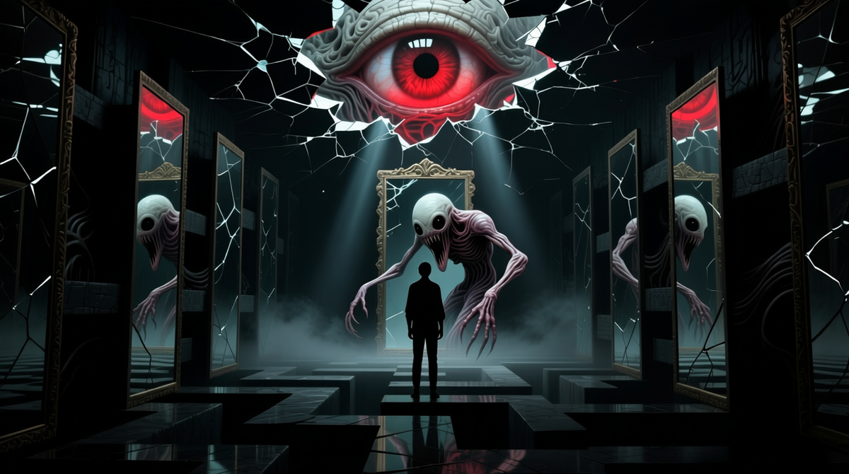 Говард Филлипс Лавкрафт — мастер космического ужаса — в рассказе "Аутсайдер" (1926) создаёт чистую гностическую притчу о проклятии знания. Одинокая фигура бежит из тёмного разрушенного замка, карабкается наверх, к свету, к людям — и на празднике видит в зеркале своё истинное лицо: разлагающийся труп, монстр, от которого все бегут в ужасе. "Ужас не в мире — он в тебе."