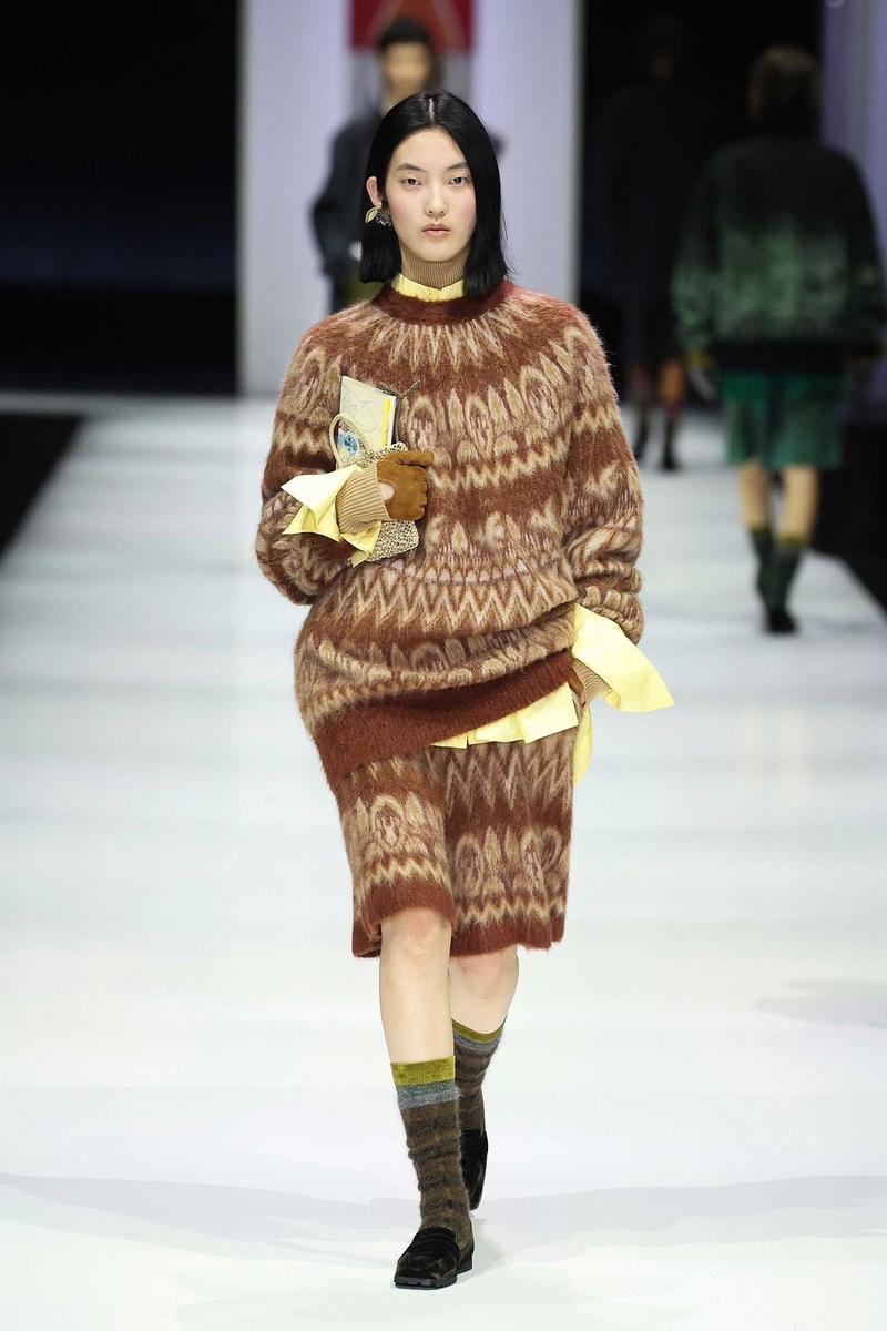 Модные коллекции известных брендов еще раз порадовали возвращением почти забытых зигзагов и вязанием на круговых спицах. Такие идеи в своей коллекции на 2026 год предлагает Anteprima. Вообще, вязания очень много. Chanel показала мини с косами.Двухцветные платья и свитера. А вот это платье мне напомнило мое, которое из ниток Ирис вязала мне мама. Правда, эта модница идет на дефиле в Милане, в сентябре этого года. Но интерес кутюрье к кроше и интарсии радует. Вернулись забытые узоры и классические линии. Интересно выглядит сочетание объемных узоров и цвета. Кофты, кардиганы и вязаные жилеты опять в центре внимания. Ну а про триумф беретов я рассказывала на уходящей неделе отдельно.