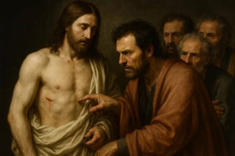 3️⃣ После распятия Иисуса, когда воскресший Христос явился апостолам, Фомы не было с ними. Когда же ему рассказали о чуде, он категорически отказался поверить. «Если не увижу на руках Его ран от гвоздей, и не вложу перста моего в раны от гвоздей, и не вложу руки моей в ребра Его, не поверю»– заявил он.