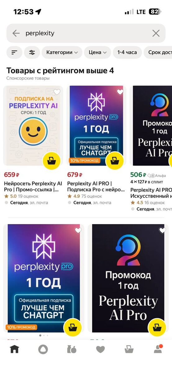 Были вопросы где купить подписку Perplexity Pro на год? Да вот, Яндекс.Маркет же :) - цена вопроса pа 12 месяцев аж 500 р