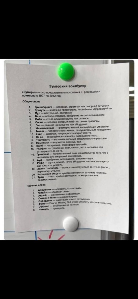 Прислали, у кого-то в офисе висит зумерский разговорник
