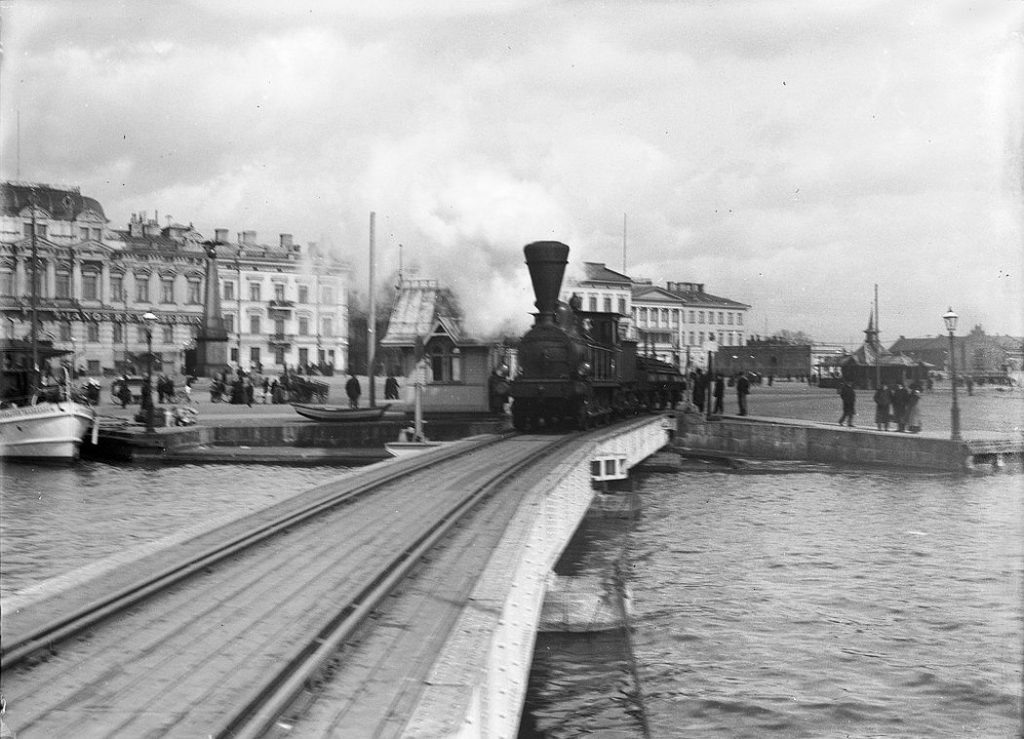 Паровоз на рыночной площади в Хельсинки. Великое княжество Финляндское, Российская империя, 1894 год.