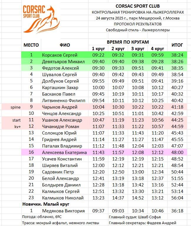 🏁 Результаты 6-й КОНТРОЛЬНОЙ ТРЕНИРОВКИ на лыжероллерах