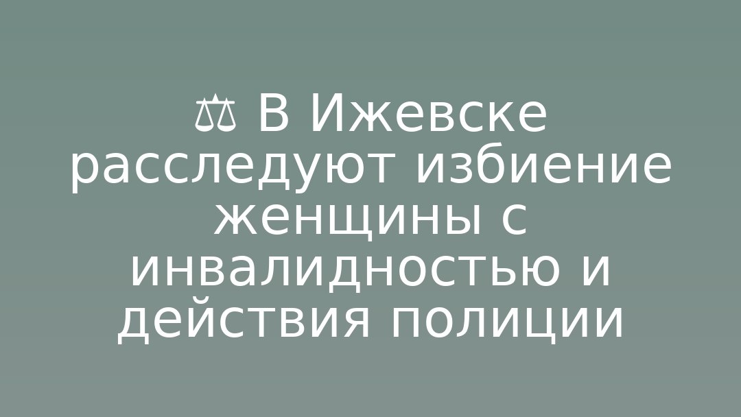 В Ижевске ночью 6 сентября группа из семи человек избила 41-летнюю женщину с инвалидностью после словесного конфликта. Первоначально полиция отказалась возбуждать дело по статье 'хулиганство', сославшись на отсутствие вреда здоровью. Впоследствии дело переквалифицировано по статье 116 УК РФ ('побои'). Потерпевшие требуют переквалификацию по статье хулиганства, отмечая частую смену следователей и низкую эффективность расследования.