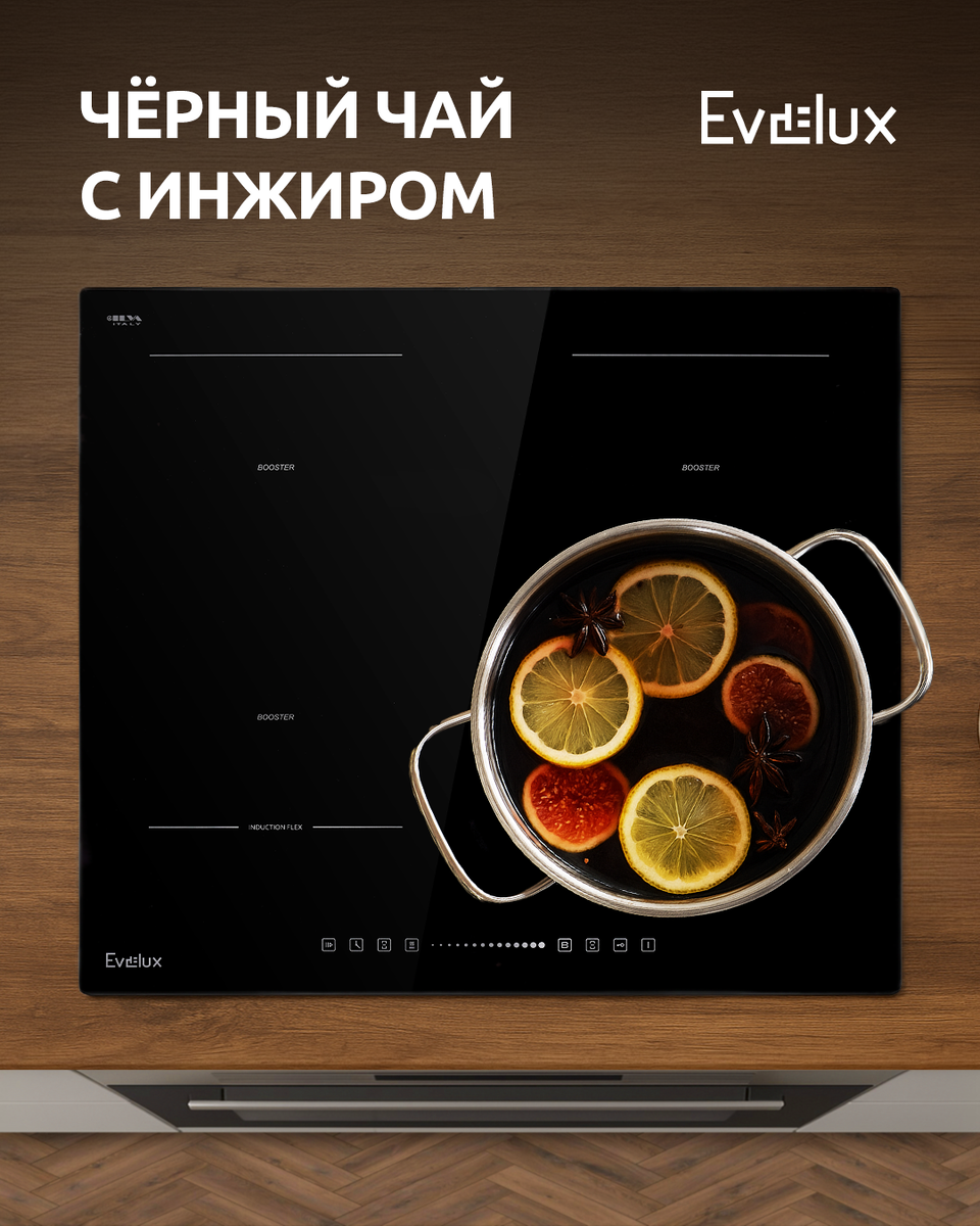 Когда хочется согреться ароматным напитком, попробуйте чёрный чай с инжиром и лимоном. Богатые терпкие нотки чая мягко переплетаются с естественной сладостью инжира, а лёгкая цитрусовая кислинка лимона придаёт композиции освежающий акцент. Для приготовления нарежьте инжир и лимон дольками, вскипятите их в кастрюле вместе с чаем, дайте настояться 5–7 минут и добавьте мёд для сладости. Чтобы быстро вскипятить воду, включите режим Booster на индукционной варочной панели Evelux EHI 6448. Подробнее о возможностях панели — по ссылке: https://clck.ru/3PmMfX