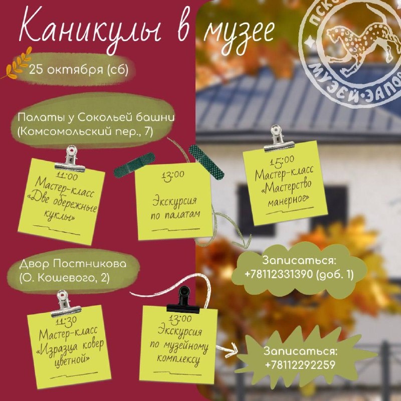 🖇 Псковский музей-заповедник подготовил интересные мероприятия на каждый день, для детей и взрослых.
