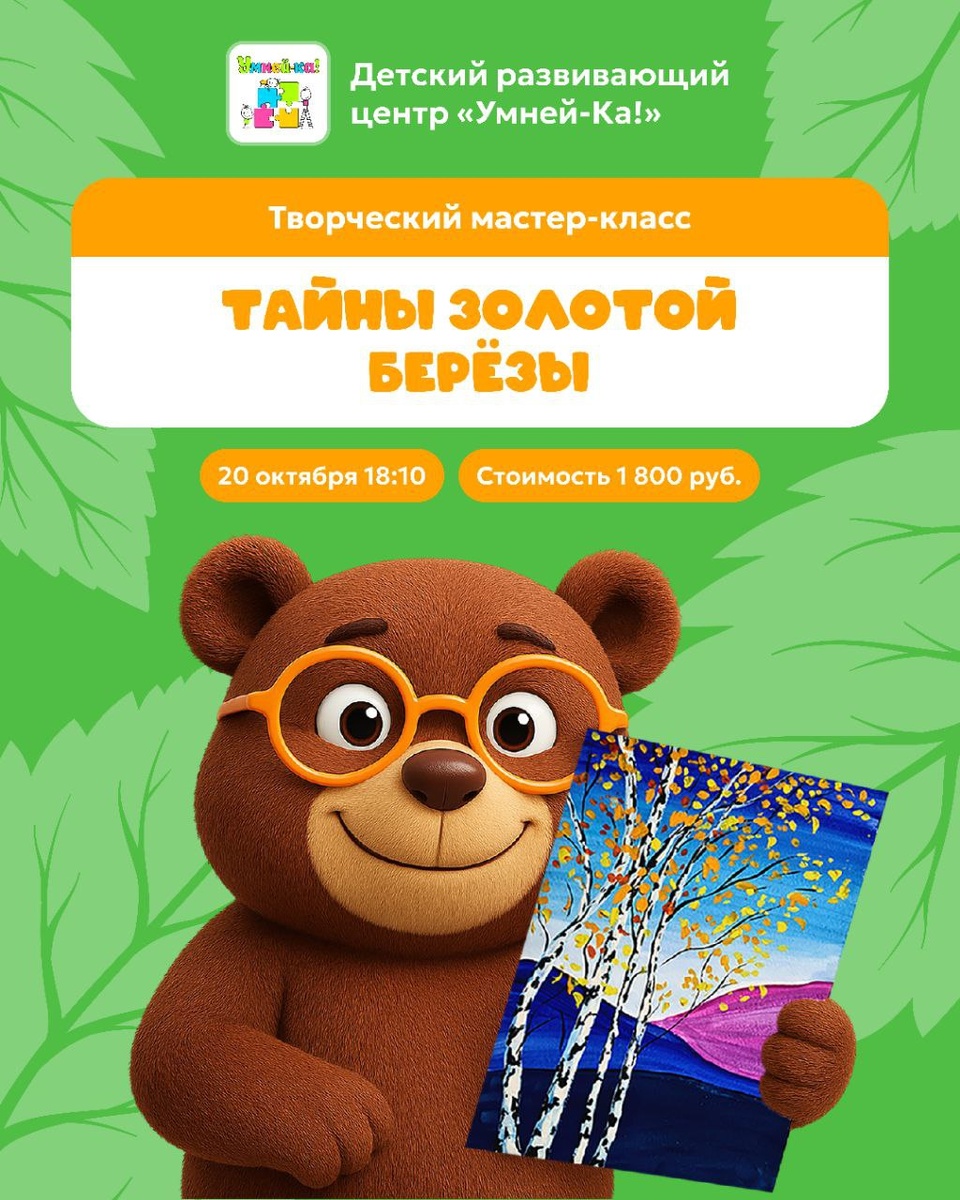 🎨 Юный художник? Это про вашего ребенка! Рисуем с детьми так, что дух захватывает! 20 октября в «УмнейКе!» состоится уникальный мастер-класс по живописи акрилом для ребят 5 + 🔡🔡🔡🔡🔡🔡🔡🔡🔡🔡🔡 Мы отправляемся в сказочное путешествие «Тайны золотой березы». Ваш ребенок под руководством нашего чуткого художника-педагога: ❤️ Создаст собственную картину на настоящем холсте! 💚Познакомится с профессиональными красками — акрилом. 🧡Узнает секреты смешивания цветов и волшебство мазков. 🩵Унесет домой не просто поделку, а шедевр, достойный рамки! Почему это идеально для вашего ребенка? 🍂 Все материалы предоставляем (качественные и безопасные). 🍂Индивидуальный подход к каждому юному творцу. 🍂 Развиваем креативность, вкус и веру в себя. ☕️ А вы в это время сможете выпить кофе и отдохнуть :) ➡️ Успейте записать вашего будущего художника! 📝 +7 (995) 917-07-97 #мастеркласс_УмнейКа@ymneiKa