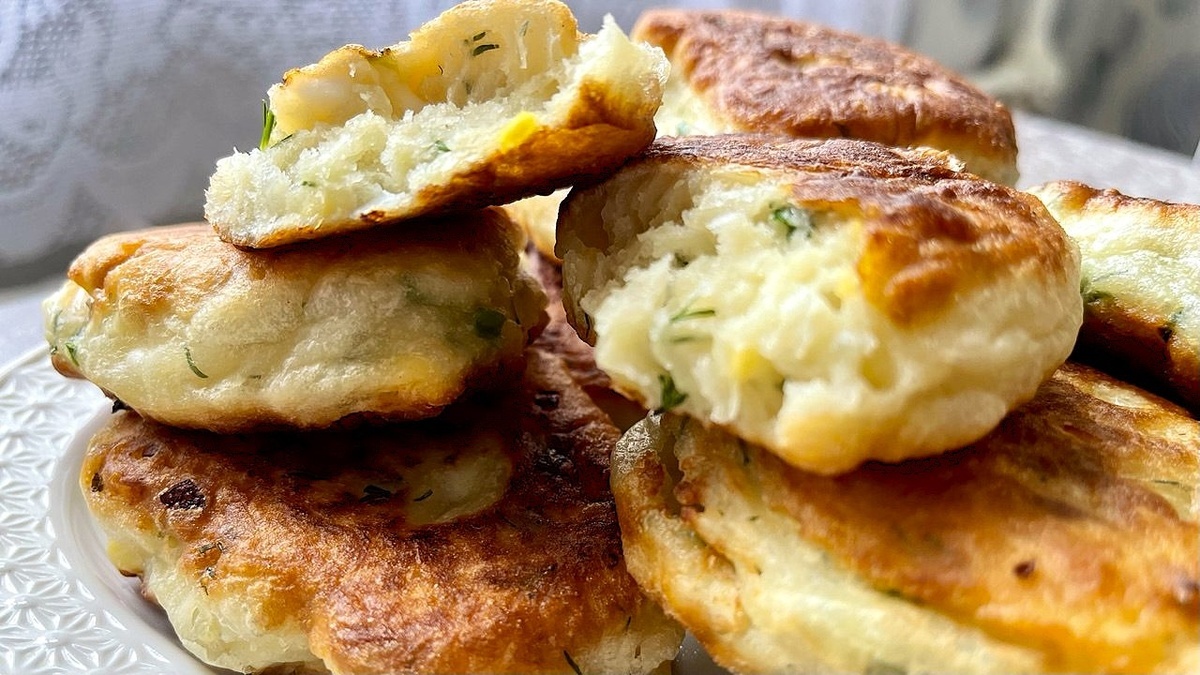 В глубокой сковороде разогрейте много растительного масла. Выкладывайте лепешки порциями в кипящее масло и жарьте до румяной корочки с одной стороны, затем переверните лопаткой и жарьте с другой стороны. Пирожки увеличатся в объеме.