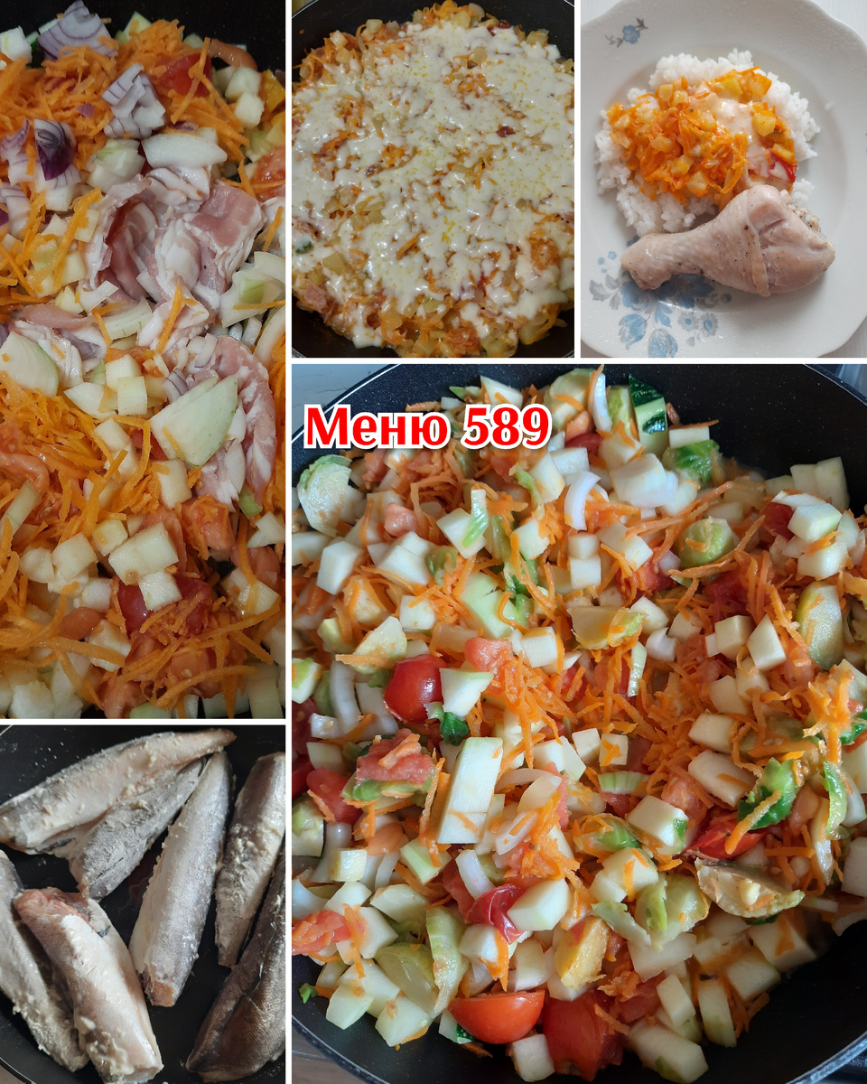 Так как помидор, кабачков, моркови и лука с огорода еще много, то последние недели часто готовлю соте по своему рецепту из меню 587. Каждый раз что-то добавляю, для небольшого разнообразия. И сейчас поделюсь своими вариациями.