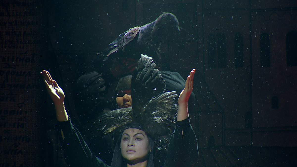Светлана Юденко олицетворяет образ насилия. В спектакле это меч. Один из самых смертоносных видов оружия, как сакральный символ.