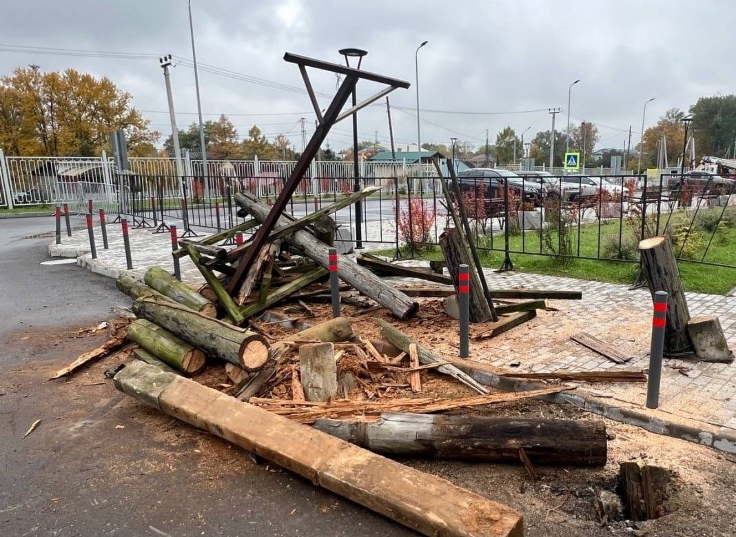 Старую деревянную опору линии электропередачи убрали у ФОК «Арсенал