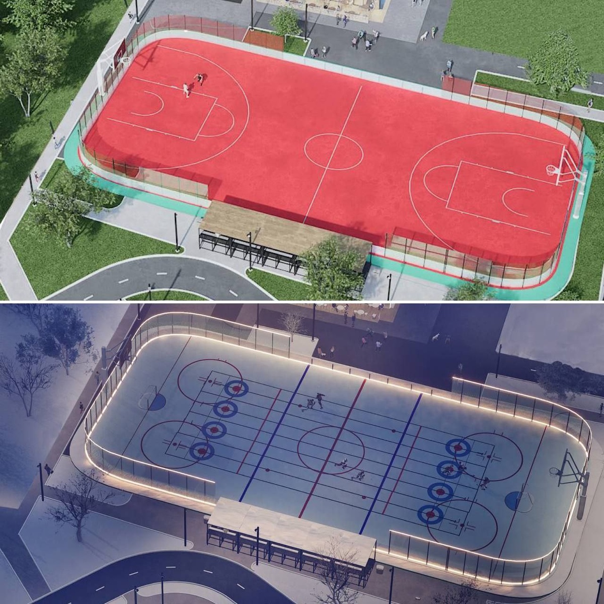 В Долгопрудном у администрации появились правильные мысли. В следующем году каток в городе сделают универсальным. Летом будет баскетбол/волейбол, а зимой хоккей/каток.