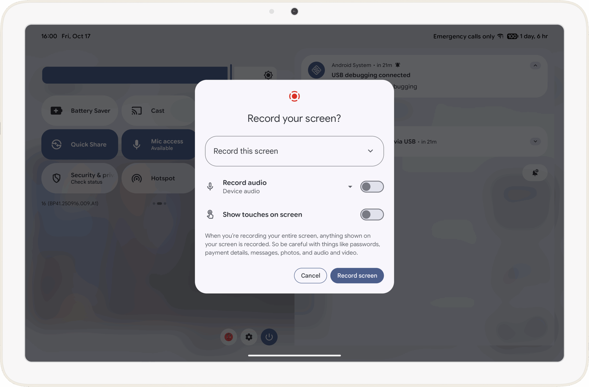 Инсайдерский портал Android Authority сообщает, что Google активно развивает функцию записи экрана на устройствах с операционной системой Android. Выходит новый функционал записи на большой экран на планшетах и ПК.