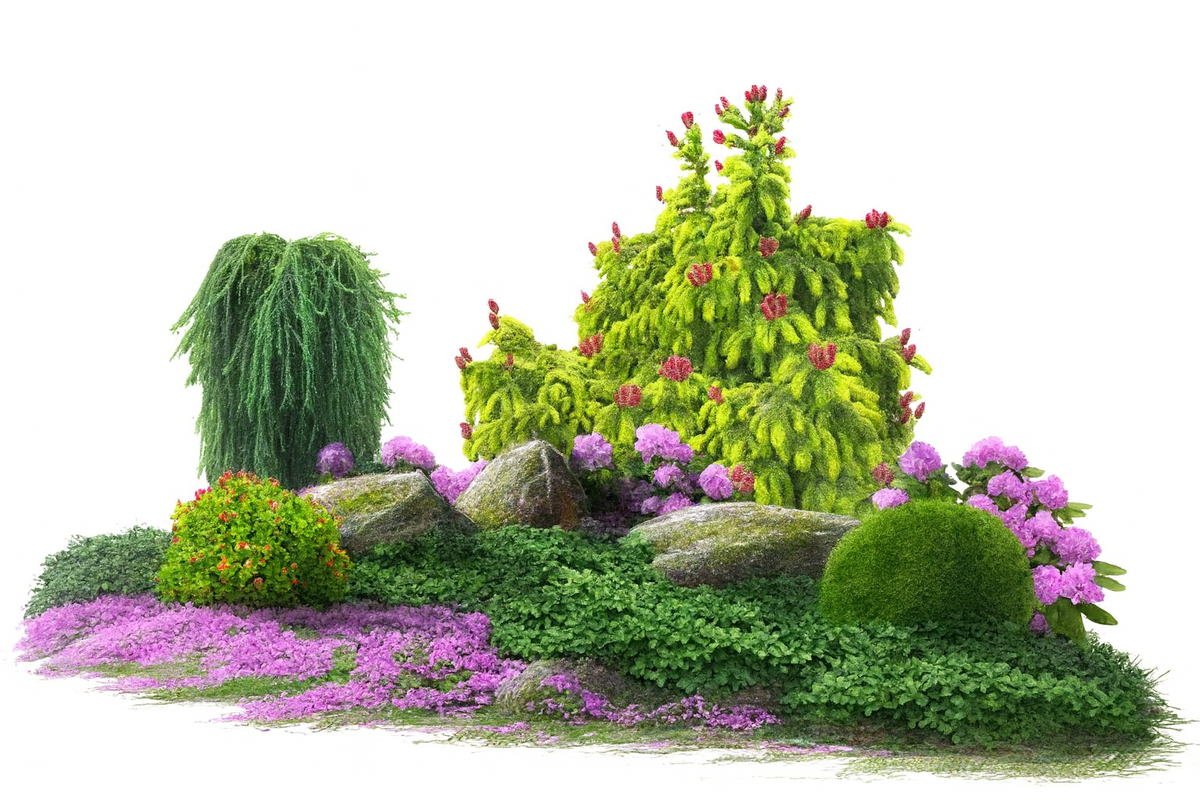 Может состоять исключительно из хвойных, комбинируя небольшие можжевельники со статными туями. Чаще дополняется декоративными злаками, хостами или цветущими растениями (розы, лапчатка).