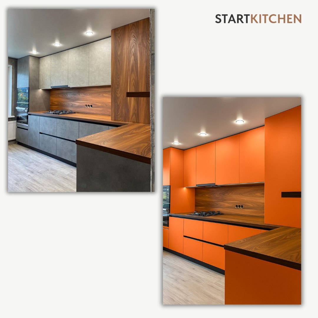 Ярко. Смело. Современно! 🍊 Трендовый цвет 2026 года — глубокий терракотово-оранжевый. Мы поэкспериментировали с цветом и делимся в вами - как бы выглядела кухня от Start Kitchen в этом трендовом цвете.😉
