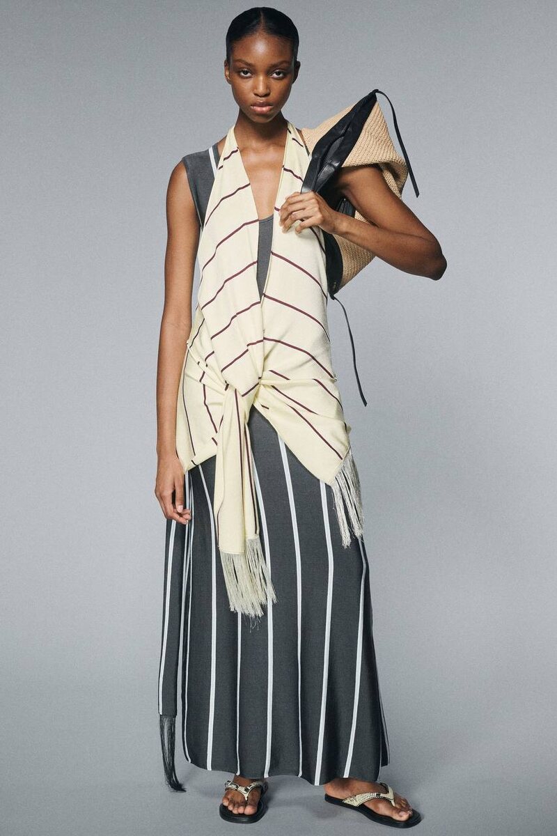 Следуя этой идее, Dries Van Noten и Coperni пошли еще дальше, интегрировав в свои коллекции сам принцип завязывания шарфа. Узел, драпировка, свободное движение ткани стали не просто деталями, а способом построения силуэта.